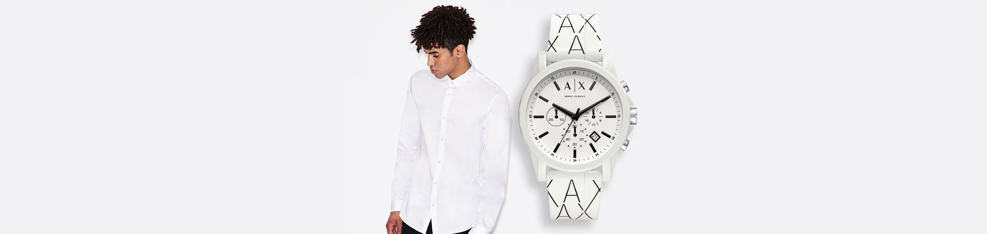 Armani Exchange è la linea fast fashion e giovanile del gruppo Armani, le collezioni offrono uno  stile contemporaneo e urbano rispecchiando lo spirito trendy del marchio. Gli orologi per uomo e donna Armani Exchange sono disponibili in una vasta gamma di modelli: solo tempo, cronografi e smartwatch con cinturini in silicone, acciaio e pelle.