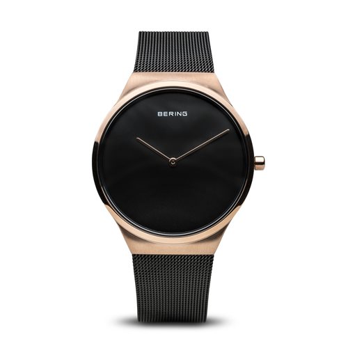 Classico, purista, eppure eccitante. Stile perfetto combinato al minimalismo contemporaneo. Ispirata al design danese, la COLLEZIONE CLASSIC presenta un orologio unico, creato per dare un tocco di stile al look quotidiano. La cassa in acciaio inossidabile color oro rosa lucido, realizzata in puro acciaio inox chirurgico (316L) di alta qualità, insieme al moderno cinturino in maglia milano color nero, realizzano il classico look BERING. La sofisticata fattura del cinturino in maglia milano dà all’orologio un tocco di raffinatezza, quasi di nobiltà. Il quadrante nero, protetto dal vetro zaffiro cristallino e antigraffio, completa perfettamente il suo look classico.
