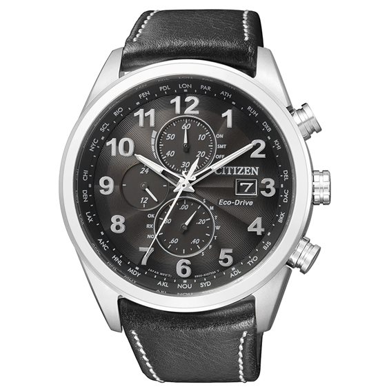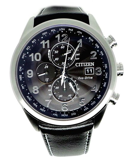 Movimento: Eco-Drive (a carica luce infinita) con riserva di carica di 10 mesi ed indicatore livello di carica sul quadrante. Funzioni: Radiocontrollato a 5 canali: ricezione segnale orario USA, Europa, Giappone, Cina.World time con orario di 26 città del mondo e ora UTC. Cronografo a 1/5 di sec. Calendario perpetuo. Caratteristiche: Cassa in acciaio, bracciale in acciaio o cinturino in morbida pelle. Vetro zaffiro. WR 20 bar. Dimensioni: Diametro cassa 43 mm Prodotto nuovo e originale, munito di manuale di istruzioni e GARANZIA INTERNAZIONALE Citizen di 24 mesi.