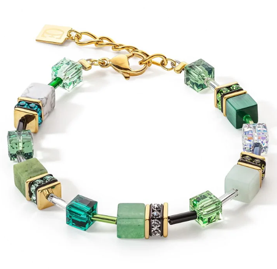 All'insegna del verde, questo eccezionale bracciale GeoCUBE® con vere pietre vere come l'avventurina verde, regala armonia a chi lo porta. Misura bracciale 18.5 cm + 3 cm