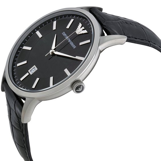 Orologio solo tempo da uomo con cassa in acciaio inossidabile, quadrante nero con datario. Cinturino in pelle nero, movimento al quarzo.