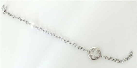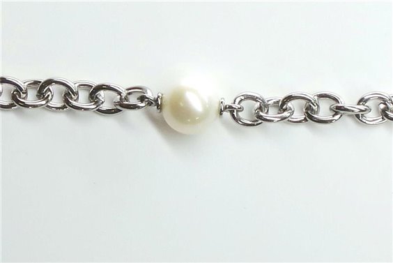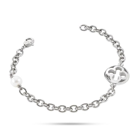 Bracciale della linea Ducale di Morellato, con perla naturale coltivata bianca, inserita su maglia rollò. Lunghezza 20cm, chiusura a moschettone.