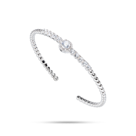 Bracciale donna in argento 925% , modello rigido . diametro cm 6 regolabile , zirconi bianchi incassati con griffe. Immagine indicativa , la confezione può variare di forma e colore.