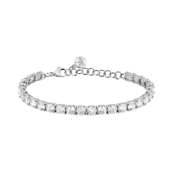 Prodotto: bracciale donna gioielli Morellato Tesori SAIW124 Bracciale tennis da donna di Morellato della collezione Tesori. Gioiello realizzato in argento 925‰ e zirconi di colore bianco. Dimensioni: 16+3 cm. La referenza è SAIW124 Questo bracciale verrà spedito con Scatola Originale Morellato