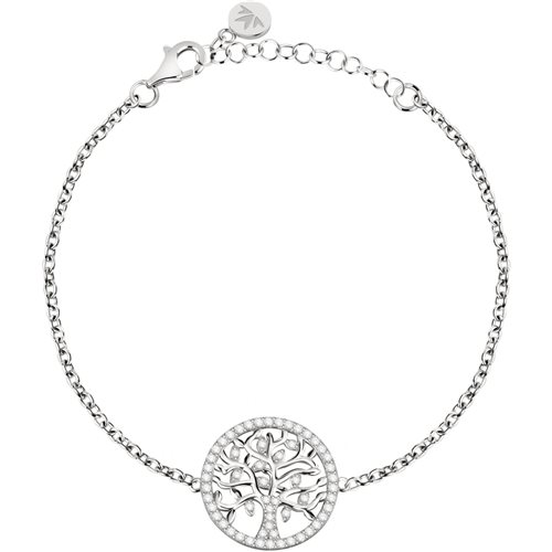 Bracciale donna , argento 925% rodiato , catena maglia rollò , lunghezza cm 19 regolabile fino a m 16 , albero della vita centrale con zirconi bianchi incastonati. Immagine indicativa , la confezione può variare di forma e colore.