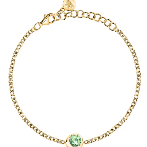 BRACCIALE MORELLATO TESORI ETERNI - SAXN13 - Genere : Donna, Misura: 16|3, Colore: Oro, Morellato experience: Precious, Modello: Punto luce, Materiale: Argento 925‰ riciclato, Peso: 4,820 gr, Pietra: Peridotto, Colore pietra: Verde, Certificato di autenticità: Sì, Confezione: Originale Morellato