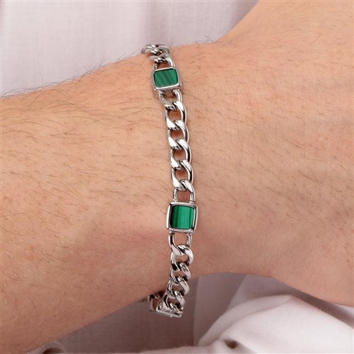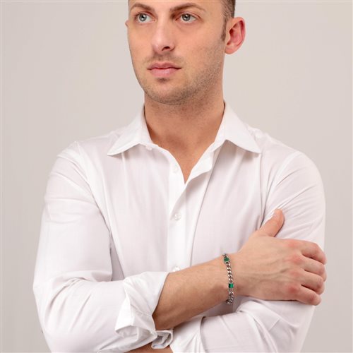Bracciale uomo , acciaio 316L , maglia groumette , lunghezza cm 21,5 regolabile fino a cm 17,5 , elementi in pietra dura , scatola e garanzia originali.