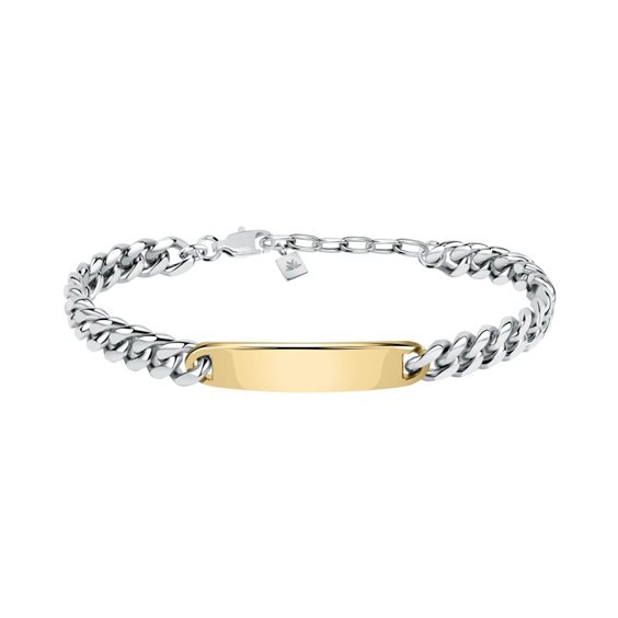 Bracciale in acciaio e maglia groumette mm 7 con targa dorata centrale 3,5 cm