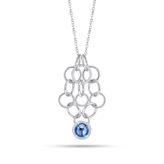 La preziosità del gioiello rodiato in argento, avvolge il blu profondo delle pietre creando una magia di luci che catturano gli sguardi intorno a sè. La rodiatura conferisce splendore, il risultato estetico è ottimo, una luminosità senza eguali e duratura nel tempo. DIMENSIONI: Lunghezza catena cm 45 accorciabile sino a 40 grazie ad anellini finali. Ciondolo cm 5. diametro cristallo blu mm.9. Immagine indicativa , la confezione può variare in forma e colore. SCATOLA + GARANZIA.
