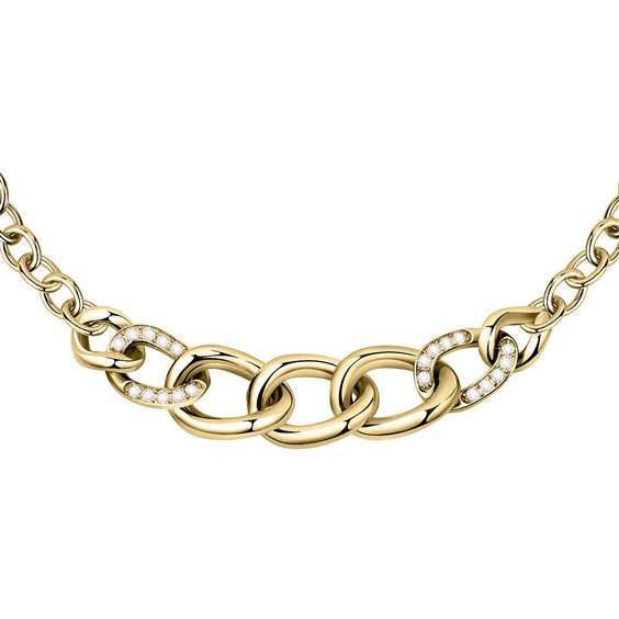 Collana da donna Morellato realizzata in bronzo con finitura dorata oro giallo. Elementi centrali impreziositi da cristalli bianchi. Lunghezza di 45cm. accorciabile a 43cm. chiusura a moschettone. Questo collana verrà spedito con Certificato di Autenticità e Scatola Originale Morellato