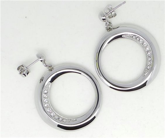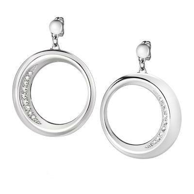 Orecchini Morellato in acciaio con cristalli bianchi. Chiusura a paletto con farfalla. Diametro cerchi 3cm.