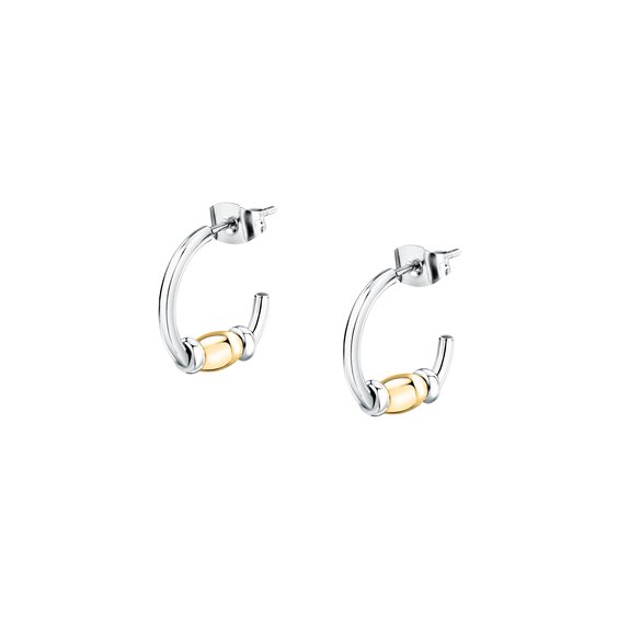 Orecchini da donna della collezione Colori in acciaio di colore argento con inserto color oro giallo. Chiusura a farfallina