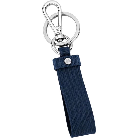 Portachiavi Morellato in pelle e tessuto blu. Anello portachiavi + moschettone. Misura totale cm 10x2.