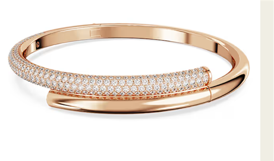 Questo bangle incrociato, che avvolge elegantemente il polso, garantisce il massimo impatto. Il design tubolare fonde a meraviglia lo stile classico e quello contemporaneo e presenta una fascia con placcatura in tonalità oro rosa, una metà della quale impreziosita da un pavé di cristalli Cry su tutta la sua superficie. Il bracciale è realizzato con una chiusura magnetica nascosta, per una finitura impeccabile. Una creazione senza tempo che saprà elevare la tua quotidianità. Articolo nr.: 5692267 Collezione: Dextera Lunghezza: 17.4 cm Diametri interni: 6 x 5 cm Dimensione decorazione: 1 x 6.3 cm Distanza apertura: 3.8 cm Materiale: Cristalli, Placcato color oro rosa, Magnete Colore: Bianco Tipo di fermaglio: Cerniera a molla
