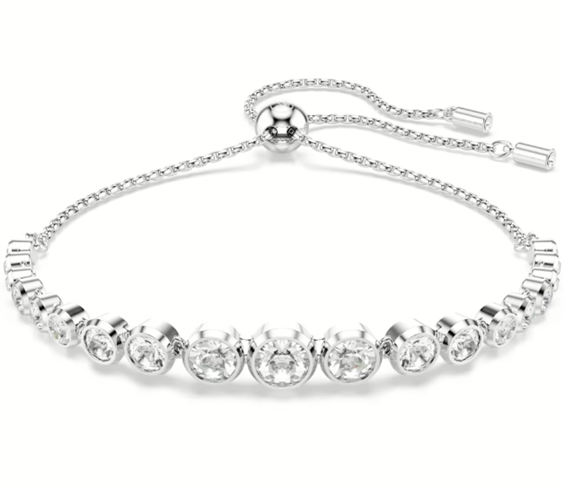 Bracciale da donna di Swarovski della collezione imber. Bracciale Placcato rodio con cristalli Swarovski Tagli arrotondati misti. Lunghezza massima: 24 cm. Ampiezza: 0.6 cm. Colorazione del cristallo bianco. Chiusura scorrevole. La referenza è 5705451