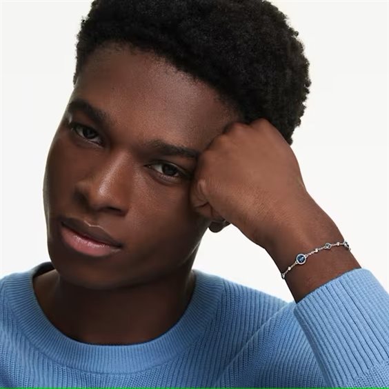 Con il suo dinamico mix di forme, questo bracciale Imber donerà al tuo polso un’inconfondibile luminosità. La catena placcata rodio presenta un gancio a moschettone e un filo di gocce di metallo, intervallate da cristalli blu rotondi in una raffinata montatura a castone. Il bracciale include anche una prolunga, che permette di adattarsi a tutte le misure. Perfetto per aggiungere un tocco morbido ed elegante a qualsiasi outfit. Articolo nr.: 5730679 Collezione: Imber Lunghezza (minima - massima): 16.5 - 20.5 cm Dimensione decorazione: 0.6 x 0.6 cm Materiale: Cristalli, Placcatura rodio Colore: Blu Tipo di fermaglio: Moschettone