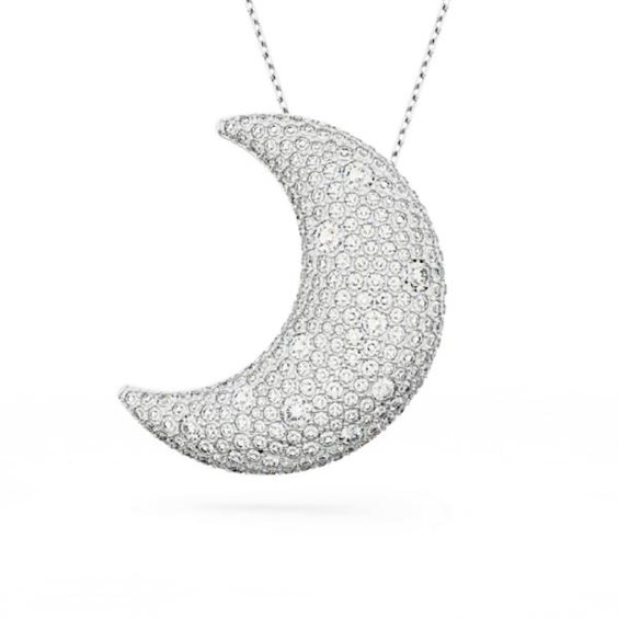 Fai gravitare il tuo stile intorno alla luna con questo pendente d’ispirazione celestiale. Il design placcato rodio presenta un’unica grande mezzaluna, decorata da cristalli di cinque dimensioni diverse per un raffinato effetto pavé. Un gioiello sfavillante che esprimerà il tuo lato mistico. Articolo nr.: 5674895 Collezione: Luna Colore: Bianco Lunghezza (minima - massima): 75 - 75 cm Dimensione decorazione: 4.2 x 3.8 cm Materiale: Cristalli, Placcatura rodio Tipo di fermaglio: Sfera scorrevole