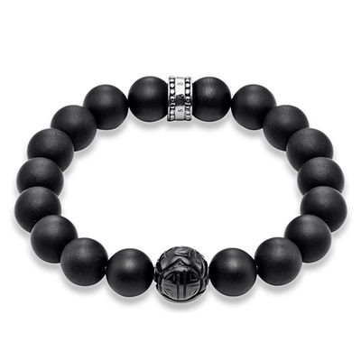 STERLING SILVER Rebel at heart BRACCIALE 'OSSIDIANA' L’incisione di ispirazione asiatica della boule di ossidiana nera lucida crea un interessante contrasto con le perle di ossidiana nera satinata e conferisce un mood mistico a questo bracciale Rebel at heart. Categoria: Bracciale Materiale: argento sterling 925 niellato Pietre: ossidiana Diametro: appross. 6.5 cm (elesticizzato)