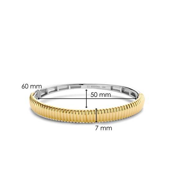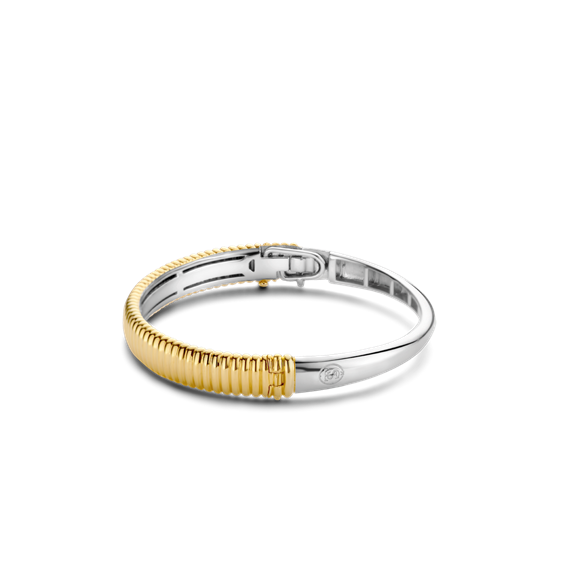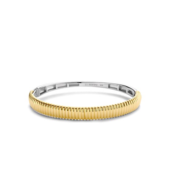 Questo spesso bracciale d'argento placcato oro TI SENTO - Milano 2957SY colpisce per l'originale lavorazione a costine. Il bracciale è realizzato in argento sterling 925. Un gioiello che ti illumina con la sua luce calda e preziosa. La chiusura di sicurezza, in argento, assicura che resti sempre con te