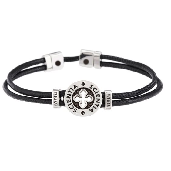 Collezione Settedoni - Bracciali in Pelle Nappa Nera e DONO in Argento Brunito - Scientia SCIENTIA: nel linguaggio comune “scienza” significa conoscenza umana di tipo tecnico, mediante la quale si arriva alla conoscenza del mondo e dei suoi meccanismi, nel linguaggio arcaico “scienza” significa anche “amore”. Il dono della scienza diventa il dono che permette all’amore di entrare nella conoscenza. Chi ama capisce meglio, capisce prima, capisce di più; il cuore che ama comprende più della mente.