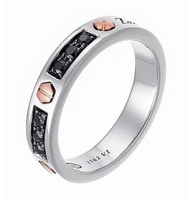 Anello Zancan in argento 925m, spinelli neri e oro rosa. Ag gr. 6,00 Au gr. 0,03 Misura anello 24