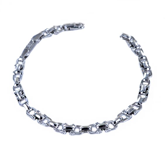Bracciale da uomo in argento 925/000 rodiato gioielli Zancan. Bracciale in argento 925/000 a finitura lucida. Lunghezza del bracciale 22cm circa e spessore 5.30 mm. Chiusura a moschettone.