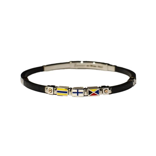 Bracciale in caucciù argento/oro e smalti,bandiere nautiche,chiusura a scomparsa regolabile da cm20 a cm21.5