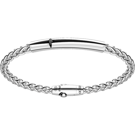 Bracciale da uomo Zancan in argento 925. Maglia a treccia. Piastra centrale tonda. Spinello nero incastonato nella piastra centrale. Lunghezza bracciale 21 cm