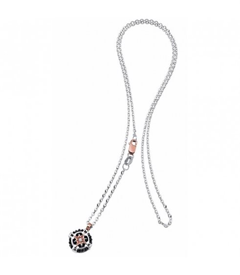Girocollo in Oro 18k Bianco con Rosa dei Venti in Oro 18k Bianco e Rosa e Diamanti 0,023ct, Diamanti Neri 0,5ct e Smalto Nero