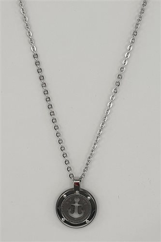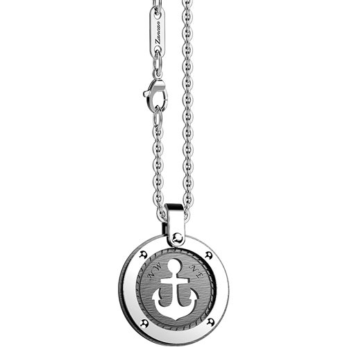 Collana in acciaio Zancan con pendente tondo e ancora all'interno.