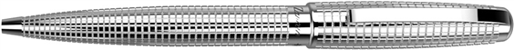 Gioiello della collezione Pen Collection. Penna a sfera in ottone con decorazione a texture in rilievo. Trattamento PVD bianco. inchiostro nero.